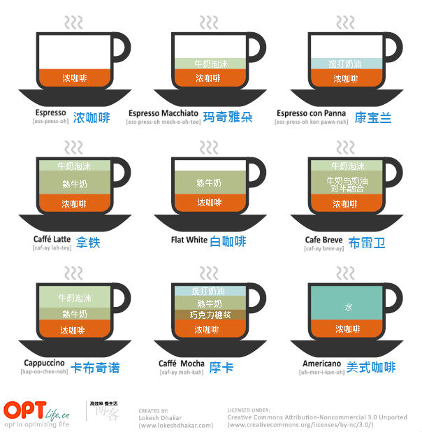 7 布列夫Breve 8 卡布奇诺Cappuccino 9 摩卡Mocha