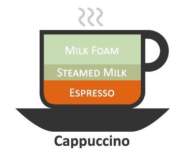 1份浓缩咖啡+0.75份热牛奶+0.75份鲜奶油+0.5份奶泡
