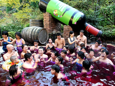 日本以其古怪节日而闻名。但在神奈川县箱根町的一个露天红酒温泉里品尝法国博若莱新酒如何?几年前,这里推出了露天红酒温泉,在每年还举行相关活动。