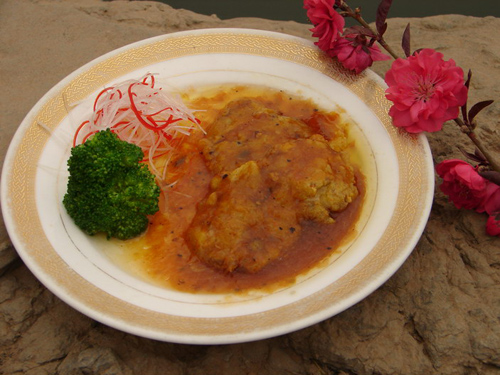 奢侈的层高,开阔的空间,橘红色的巨幅壁画,飘荡的红色窗帘——这样的场景下,女人才能走出张曼玉式的摇曳多姿。菜的口味呢?酒香法国肥鹅肝、意大利红酒醋海蛰头、黑龙江鱼子烟熏蛋、金鲳鱼比利时苦白菜芝麻菜沙拉。老上海式的琳怡,菜肴讲究的是时尚摩登。学一句法国总统萨科奇的话,我们要与老本帮菜平静决裂。