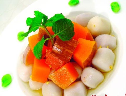 南瓜,富含维他命A和B,不饱和脂肪酸,具有很好的抗氧化作用,因此有人称之为黄金瓜。南瓜既可以做菜又可当主食,还可当点心,无论蒸、煮、炸、甚至煮糖水都是那么美味。
