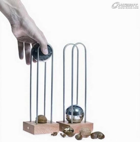 重力坚果钳,重金属球从一定高度落下砸碎坚果,很有特色