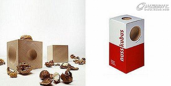 立方体坚果钳,实木制成,每一面都有不同的凹洞,放不同形状的坚果