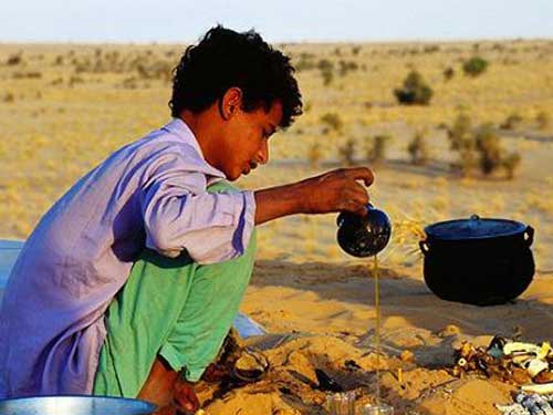 在喝茶这件事上,撒哈拉沙漠的游牧者是不会草草了事的。他们有的是耐心,至少会冲够三道茶,而每道茶都有着不同的滋味。