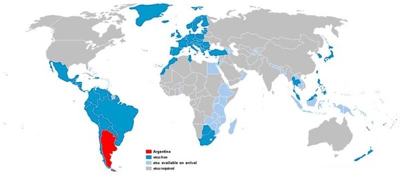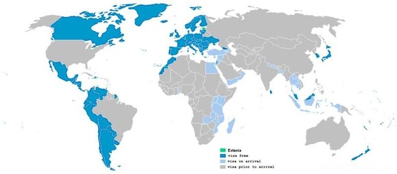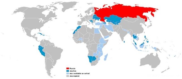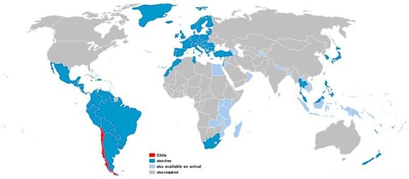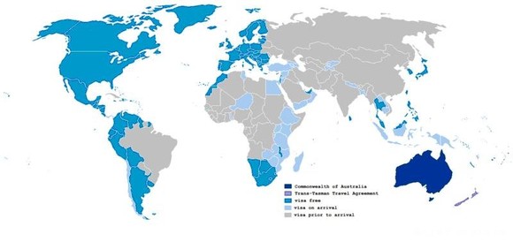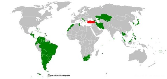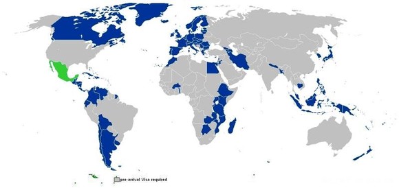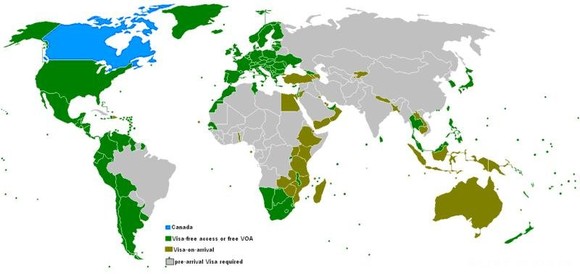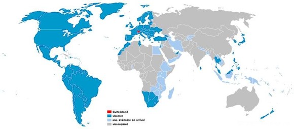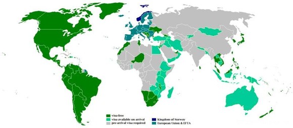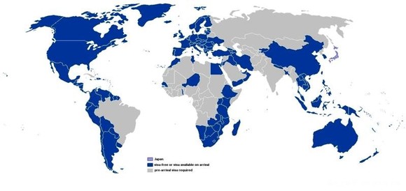 注1:一般深蓝色的为免签 证,浅蓝色的为落地签证..