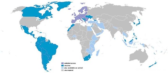 波兰护照(紫色欧盟无需护照,深蓝色免签,浅 蓝色落地签)