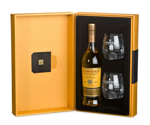 作为欢庆08的献礼,格兰杰首次特别呈现“经典格兰杰礼盒”,礼盒外包装呈现夺目的金色,腰 封饰以黑色缎面;内衬则以高贵黑丝绒,镶嵌一瓶70公升经典格兰杰威士忌(THE ORIGINAL)与两枚晶莹剔透的水晶酒杯,体现奢华尊贵品味,为追求高品质威士忌的钟爱者献上珍贵的节日臻品。
