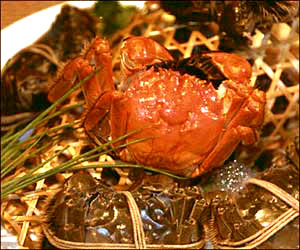 澄湖大闸蟹:此蟹产于江苏苏州地区阳澄湖,是闻名国内外的中国名产。阳澄湖湖水大闸蟹,个大体肥,一般三只重500克,大者只重250克以上,最大者可达500克,青背白肚金爪黄毛,十肢矫健,蟹肉丰满,营养丰富。自古以来,阳澄湖大闸蟹即令无数食客为之倾倒。章太炎夫人汤国黎女士有诗曰:“不是阳澄蟹味好,此生何必住苏州!”