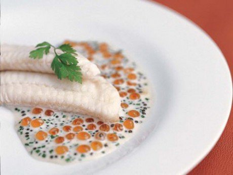 清蒸大菱鲆——1985年美国前总统里根在联合国40周年纪念晚宴上啧啧称赞的美味。蒸大菱鲆鱼配上特制的香槟酱汁简直就是绝世美味。