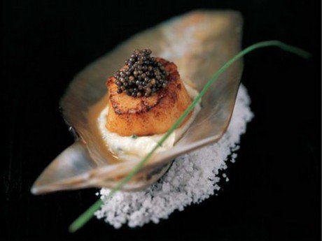 栉孔扇贝餐——克林顿首次国宴最爱美食。栉孔扇贝餐是由土豆韭菜酱、扇贝、鱼子酱、黄油和其他佐料烹调而成。