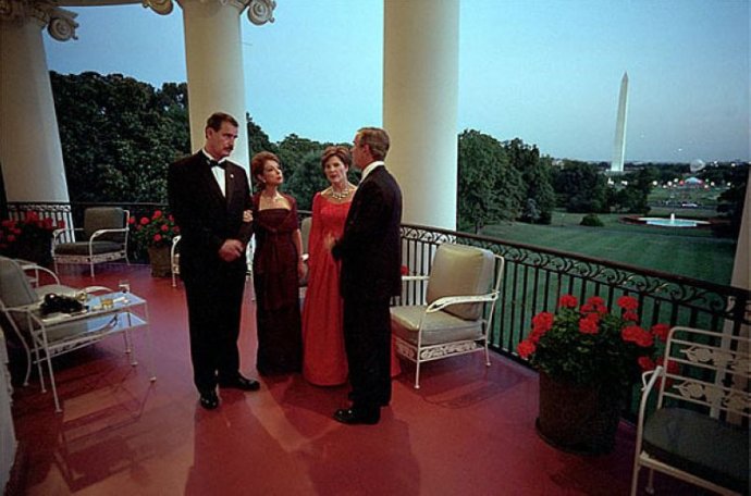 小布什在首次以美国总统身份举行的国宴上,款待墨西哥总统福克斯夫妇。奥巴马夫妇将在11月24日作为东道主欢迎印度总理曼莫汉·辛格的来访。