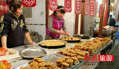 牛羊肉泡馍、白云章饺子、贾三灌汤包、黄桂柿子饼、粉蒸肉、羊肉饼、烤羊肉、酱卤制品让人流连忘返。鼓楼旁边的回民坊更是独具特色,这些小店,或沿街而开,或摆在马路边,装修不豪华,陈设也很简单,但小吃的味道却很地道,其用料、做法非常考究。