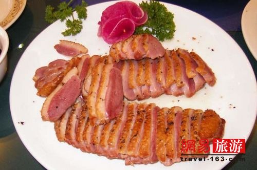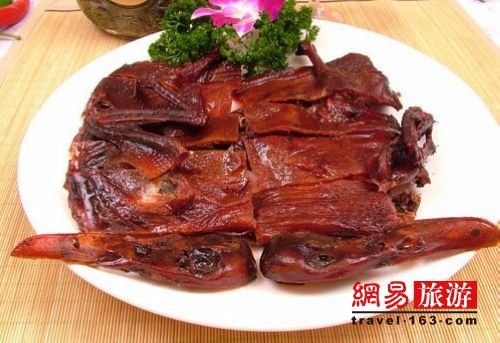 特色: 皮色玉白油润,鸭肉微红鲜嫩,皮肥骨香,异常鲜美。