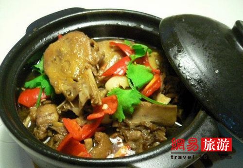 特色:福建人“补冬”买鸡鸭虾蟹,姜母鸭就是其中比不可少的一种,姜母鸭有咸、淡、辣三种口味制作,做法是猛火开、温火炖、补药下锅翻三翻,起锅油而不腻,口味独特,流香溢彩。