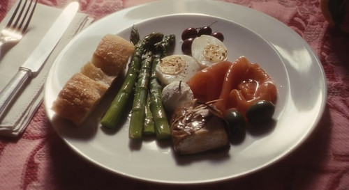 李安家庭三部曲的最后一部,在这里的也不再说这电影的文化内涵了,今个主要是吃,所以关注点放在食物上。鸡鸭鱼肉,油盐酱醋,煎炒烹炸,朱老爷子的一双妙手,奉献一桌拿手好菜。中国菜的名称还都很讲究,哪怕是不怎么样的菜,都有一个虎虎生威的名字,汤上面放根葱叫“猛龙过江”,炸粉条上面趴两根蚂蚱叫“雪山飞狐”,太牛了。听闻最敢吃的是广东人,不知道有没有这么一说,山东这片吃金蝉(知了),不知道那边吃不吃,我想上海人肯定不吃吧,美国人是肯定不吃的,知了在美国是害虫。