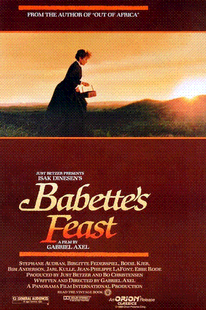 本片根据伊萨克·迪纳森的小说改编拍摄而成。19世纪的丹麦,两位已经成年的姊妹伴随着牧师父亲居住在丹麦偏远的村庄。即使在父亲去世以后,她们仍一如既往地继续留在父亲所创建的教会奉献自己。后来,她们收容了一位来自法国的女难民芭贝特,她们及村民的生活就此改变。芭贝特幸运地获得了法国巨额彩金,她为了回报这对好心的姊妹,特别为她们及村民准备了一场丰富的晚餐,并且唤醒了大家心中尘封已久的对美好事物的渴望……