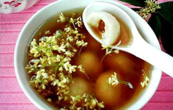 桂花糖的做法很简单:将新鲜桂花去蒂清洗干净后,放入广口玻璃瓶里,每放一层桂花就撒一层白糖,按此比例装满瓶,盖紧瓶盖,置于阴凉的地方,半个月以后即可食用。做汤圆馅的时候还可加入花生与芝麻。将此馅包入和好的糯米团中,下锅煮熟即可。