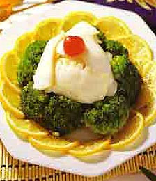 做法:西兰花洗净,切成小花状,用盐水浸片刻,放到锅里煮熟后捞出待用;将蟹肉加入盐等调料拌匀,放锅内蒸5分钟后取出,再加入蛋白拌匀;将西兰花排放碟上,淋上蟹肉及蛋白即可食用。