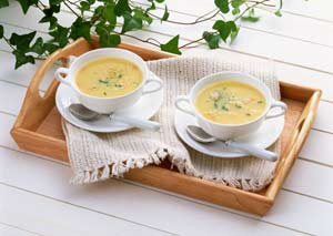 用粳米100克煮到将熟时,放入已清洗干净的荷叶和荷花,再煮10分钟左右即可食用。粥色碧绿微亮,令人食欲大开。常服荷花粥,能改善人的面部油脂分泌,减轻痤疮,使面色红润,容光焕发。另外,荷叶泡水当茶饮,还具有减肥、降血脂、瘦身的效果。