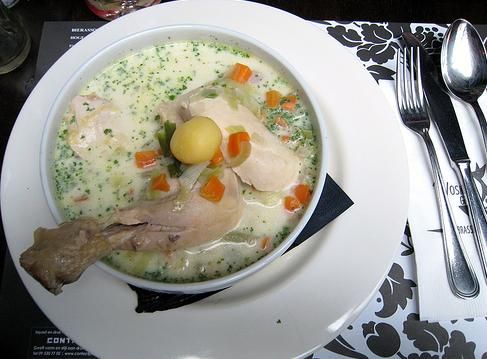 今天要介绍的炖菜代表作,是来自比利时的名菜根特炖汤(Waterzooi,根特是地名,为比利时的第二大城市)。可能你对西欧国家比利时知之甚少。这其实很正常,要知道阿加莎-克里斯蒂(Agatha Christie)笔下的大侦探波罗(Hercule Poirot)在欧洲人面前也都要不厌其烦的解释自己是比利时而非法国国籍。“Waterzooi”这个词来自于荷兰语,意思是“混沌之水”(只是这么个叫法,这款汤本身其实既不混也不沌)。我突然想问一个你百分之九十九会答错的问题:“蓝精灵是哪个国家的动画片?”反正给你5次机会你也不会猜比利时吧?其实答案恰恰就是比利时。作为欧洲绝对的动漫大国,比利时至少给我们输送了丁丁和蓝精灵这两个经典卡通形象。那这和根特炖汤有什么关系呢?因为在比利时最著名的漫画“美丽新世界”(Asterix)中,比利时勇士就是喝完这道“Waterzooi”后和罗马人作最后决战的,由此可见这道菜在比利时人心中的份量。