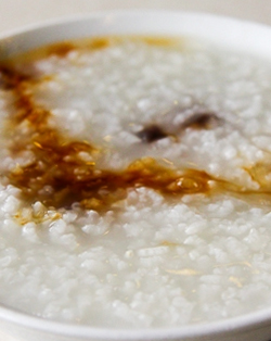 坚记旁边一条横巷里的不起眼的档口,鸡粥