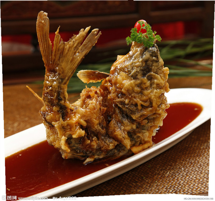 其中的“西湖醋鱼”是杭州传统名菜,相传宋朝时西湖附近有位姓宋的青年,平日里以打鱼为生。有次生病时,他嫂嫂亲自到湖里打鱼,用醋加糖烧成菜给他吃,吃后病就好了。后来此菜名即成“西湖醋鱼”,杭州地区各家菜馆均有供应。过去孤山楼外楼墙壁上曾留有“亏君有此调和手,识得当年宋嫂无”的诗句,慕名而来品尝的日益见多。清康熙皇帝南巡时,也指明要品尝西湖醋鱼,可见此菜在清朝初期即名扬全国。
