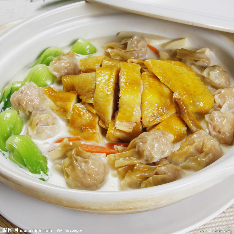 其中三套鸭系传统名菜,清代《调鼎集》曾记载套鸭制作方法,为“肥家鸭去骨,板鸭亦去骨,填人家鸭肚内,蒸极烂,整供”。后来扬州的厨师又将湖鸭、野鸭、菜鸽三禽相套,用宜兴产的紫砂烧锅,小火宽汤炖焖而成。家鸭肥嫩,野鸭香酥,菜鸽细鲜,风味独特。