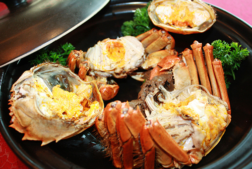 阳澄湖大闸蟹闻名天下,鲜盖百味。此蟹产于江苏苏州地区阳澄湖,是闻名国内外的中国名产。阳澄湖湖水大闸蟹,个大体肥,一般3只重500克,大者只重250克以上,最大者可达500克,青背白肚金爪黄毛,十肢矫健,蟹肉丰满,营养丰富。自古以来,阳澄湖大闸蟹即令无数食客为之倾倒。章太炎夫人汤国黎女士有诗曰:“不是阳澄蟹味好,此生何必住苏州!”