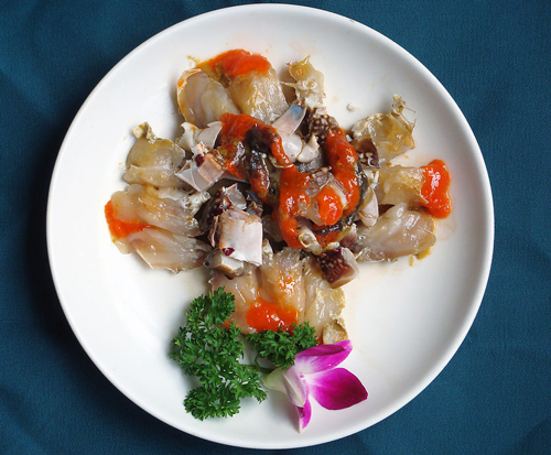 此蟹肉色洁白,肉质细嫩,膏似凝脂,味道鲜美,为海蟹之上品。
