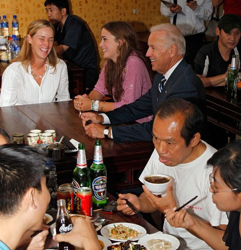 其实早在2011年访华期间,拜登就曾在鼓楼附近的姚记炒肝品尝过炸酱面。不知这两年间是否“魂牵梦萦”,以致本月初刚抵达北京,就迫不及待地“故地重游”,直奔鼓楼吃地道的炸酱面去了。