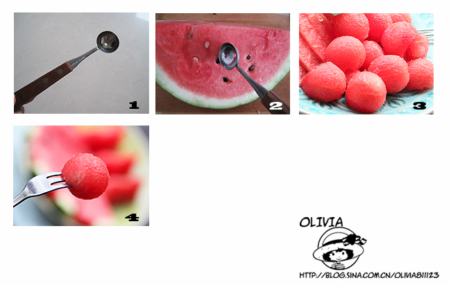 2、最好选半个西瓜取球,这样西瓜汁不易流出。