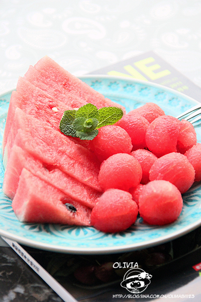 3、取西瓜球若干,放入盘中即可,冰镇一下更好了。