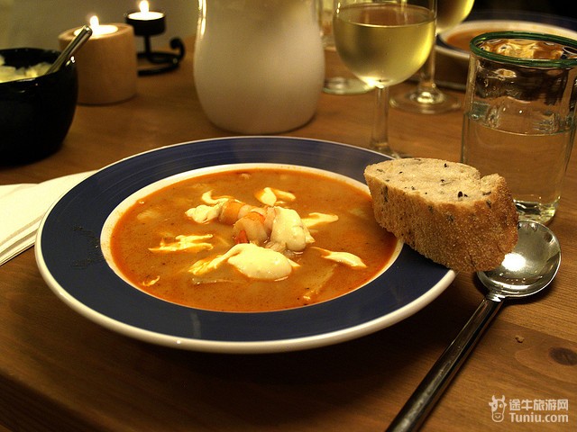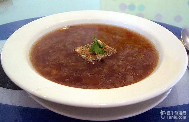 最正宗的法式洋葱汤,非得厨师花费两三个小时才能炮制成功。这样做出来的汤,温暖浓香,整款汤滑嫩得到了让人解恨的程度,你能想象出一口咬下去的那种感觉吗?。。。。。。软软的,略带芝士的酸,不舍得吞下去却已悄悄融入舌间。在法国,人们通常要在1月1日凌晨5点喝一碗洋葱汤