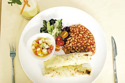 无疑,吸引人的是酥酥的焗豆,大豆有营养,这在牛奶危机的今天更为适用。在这里,番茄汁起了大作用,使得它不仅吸引眼球而且吸引味蕾。