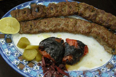 在以色列,烤肉店是犹太人与阿拉伯人一致的好去处:烤肉味道鲜美,令人回味无穷。在Nagí店,厨师将切碎的牛肉与洋葱、欧芹、松仁等混合后穿在铁签子上,放在烧烤架上烤制而成,烤肉外酥里嫩、醇厚可口,常常同米饭或沙拉一起食用。