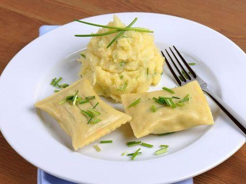 馅与中国的大异,干酪、洋葱、蛋黄是主料,有时也加一些菠菜、牛肉;另外还有一种是以鸡肉、干酪做主料,主要调料有黄油、洋葱、柠檬皮、肉豆蔻。他们包饺子是把面压成一长条,一勺勺放好馅,在面的边缘沾上水,再用同样的一条面片合在一起压好,然后用刀一一切开。煮饺子的方法则与中国人一样。