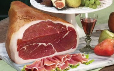 注:帕尔玛火腿(Prosciutto di Parma),意大利艾米里亚-罗马涅区帕尔玛省特产。帕尔玛火腿原产地是帕尔玛省南部山区。帕尔玛火腿是全世界最著名的生火腿,其色泽嫩红,如粉红玫瑰般,脂肪分布均匀,口感于各种火腿中最为柔软,因此正宗的意大利餐厅,都有供应。能否提供优质的帕玛火腿,几乎成为评价餐厅素质好坏的标准。2012年获批中国地理标志产品保护登记。