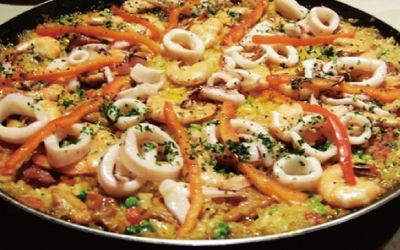 注:西班牙大锅饭(加泰罗尼亚语:Paella,宽式IPA:/pa’eʎa/),又译西班牙海鲜燉饭,源于西班牙巴伦西亚,在当地语言是“锅”的意思(源于拉丁语的patella),而在西班牙语paella专指此种饭,而制作此饭的锅则叫做paellera。此饭是星期日与法耶火节(Falles)的食品。 参考 维基百科