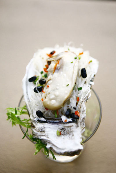 数不清的食评人说:蚝只有生啖最佳。找一个深秋的清晨,顶着海边刺骨的风,前一秒自冰冷的海水中捞出蚝,后一秒迅速剥开,将肥厚的蚝肉自粗糙且不规则的壳中挖出,这时连那一两滴调味的柠檬汁都可以省了,就着一汪咸涩的海水,大口吞下。等等!这时法国人会热心地告诉你,千万不要吞得太快,要细细地喝它咸咸、可口之极的汁。这种气味堪比世间任一食物,原始的甘甜由味蕾至食道,再进入胃中,最后真实持久地激荡在身体里。这时候,要适时地吃一口涂满了牛油的黑面包,加倍刺激味觉……接下来,当然,要喝一口上好的白葡萄酒,再闭上眼睛享受这一刻。