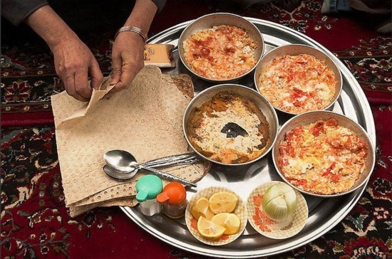 伊朗特色就是这些抹了黄油和果酱的烤饼面包。当这样简单的早餐不能满足伊朗人的需要的时候,他们就会吃哈利姆。哈利姆是在一个巨大的容器中用小麦,肉挂,黄油和糖与肉丝共同混合烘焙而成的食物。