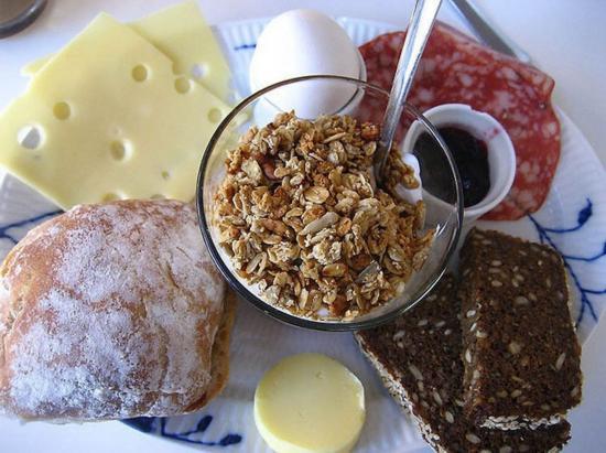 最棒的早餐展示。在丹麦人的早餐盘里经常会出现黑面包,奶酪,意大利蒜味腊肠,火腿,馅饼,蜂蜜和果酱,有时候还会有一平盘巧克力。
