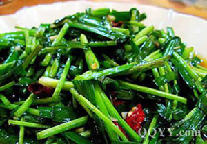 原料: 鲜油菜二斤 精盐五钱 椒油五钱 姜三片葱一钱