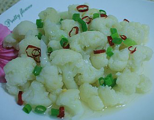 原料: 菜花二斤 精盐五钱 椒油五钱 葱花一钱姜二钱