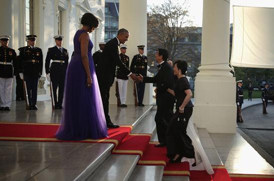 美国总统奥巴马在白宫宴请日本首相安倍晋三 据白宫公布的消息,这次国宴的菜单由白宫厨师克里斯·科莫福德、特邀名厨森本正治和白宫糕点师苏珊·莫里森共同设计。菜品在传统西餐搭配的基础上加入了日本元素,也将会使用筷子。安倍届时将品尝到生鱼片、和牛牛排、日本麻糬等菜品,用米歇尔白宫菜园里摘取的蔬菜所制成的沙拉,用豆腐和豆奶制成的奶酪蛋糕,还有白宫厨师特别用糖制作的樱花茶壶。