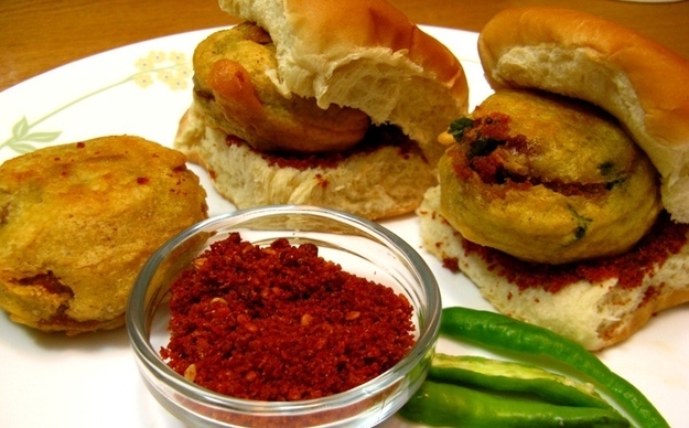 这是广受欢迎的印度香辣小吃。它其实是类似印度咖喱角的土豆泡芙,包在汉堡面包中,再配上辣椒和其它辣料。任何跟咖喱角搭上边的东西都是美好的。