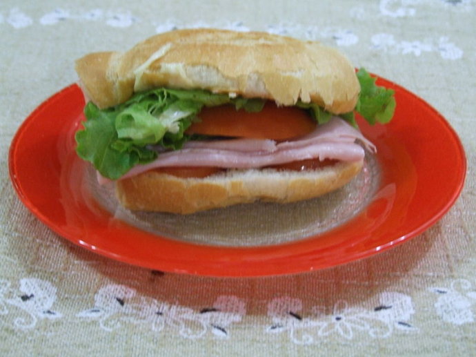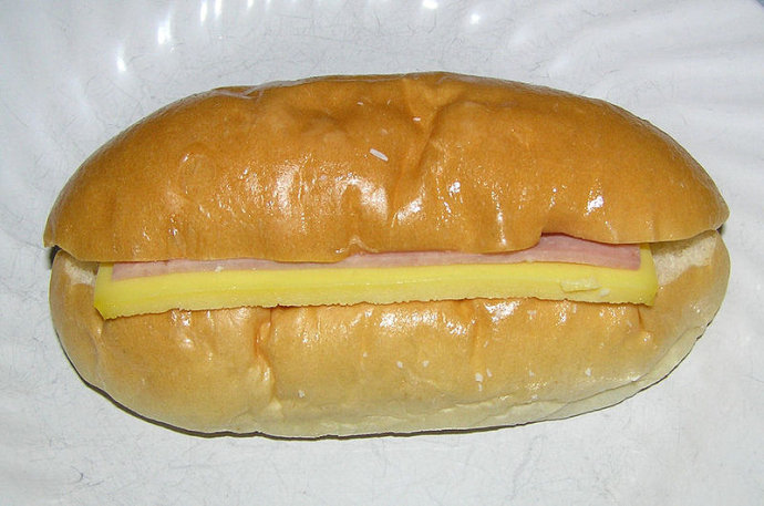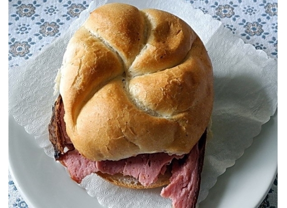 由一种烤饼面包做成的夹心三明治,有时火腿用代替牛肉。
