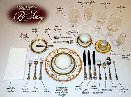 西餐餐具分置于中央食盘的左侧和右侧。因为西方人吃饭,习惯左手用叉,右手使刀。刀叉数量与菜肴数量相等。如果左右刀叉件数不同,通常叉会多于刀