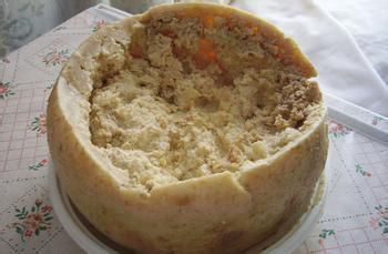 哈吉斯是苏格兰的传统菜品,它是将羊的心肝肺与洋葱、燕麦片、肉类和各种佐料混合,再放进羊的胃里炖煮而成的。这道菜可以追溯到15世纪时期,如今,它被认为是在彭斯节里给罗伯特·彭斯(苏格兰农民诗人)的晚餐,常常和tatties and neeps(土豆泥和萝卜)搭配,或者再加上一杯苏格兰威士忌,堪称完美。今天,哈吉斯在商店很容易买到,并且这种食物被认为富含铁和纤维,对身体十分有好处。