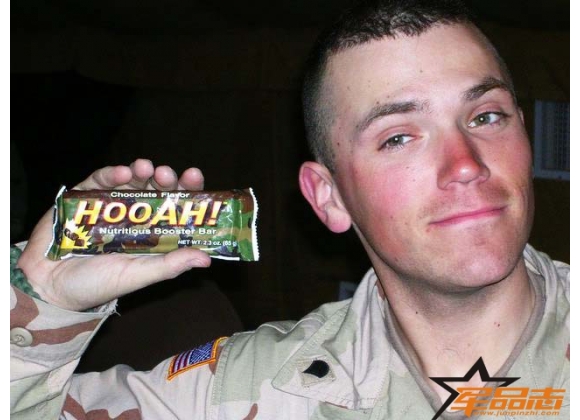 功能食品“HooAh”!混合巧克力棒,每条净重65克。与普通的巧克力相比,“HooAh”含有更高的热量和大量葡萄糖,能短时间血液内的血糖含量,对普通士兵保持体能合在恶劣环境中活动的特种部队都有很重要的意义