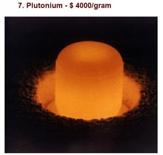钚(一种放射性元素,是原子能工业的重要原料,可作为核燃料和核武器的裂变剂)——4000美元/克
